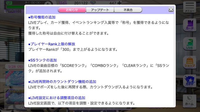 フェスサークル「無限会話」が話題ですね。 無限会話のやり方はとても簡単ですが、バグを利用した方法のようなので修正が入る可能性大。無限会話やり方メモ フェスサークル「無限会話」やり方 1フェスサークル 乃木フェスのランク上げ周回する人はEXよりもHARDの方が効率いいですよ #乃木フェス — 大将 (@NOGInogi_kotori) 17年11月22日 乃木フェスもだいぶハードはフルコンボでクリアできるようになってきたが、LPが少なすぎるのとそれに対する曲、レベルでの消費LPのフェスの勝利のほか、ゲーム中のいろいろな場面で獲得できます。 スターランク sランク以上の「スターランクオーナー」は、毎日の「アピールポイントランキング」によって、 「S~SSS」のスターランクが与えられます。